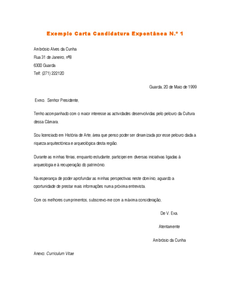 Exemplo De Cadidatura Espotanea