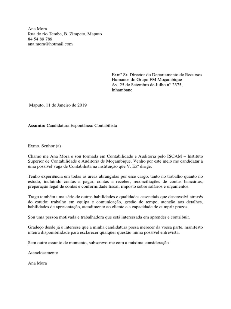 Modelo De Carta De Candidatura 3 Contabilidade Negocios